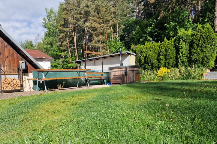 Finská sauna s odpočívárnou a výřivka je k dispozici přímo v areálu, hned vedle sociálního zařízení. Dále lze po domluvě připravit horký sud - vše viz foto.