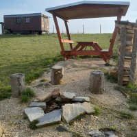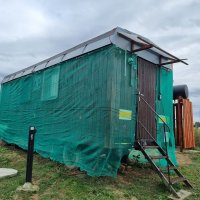 There is a solar shower hidden behind the marquee, here you can wash yourself. Don't forget to top up the water in the barrel after use for other visitors with the hose (it's under the marquee) - connect it at the garden tap by the tank and at the shower side to the top of the barrel. The water is topped up and then flows out of the barrel when showering alone.