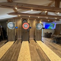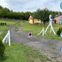 Children's playground in the fenced garden of the Caffé-bar (swings, slides, bouncy houses, bouncy castle, trampoline, skittles, fireplace) 30m from the site