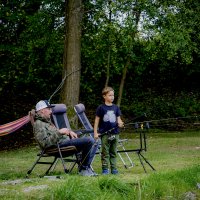 Fishing chairs, a table and some basic fishing equipment are also provided.