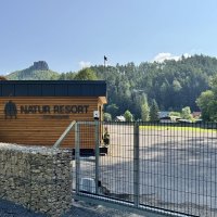 Five parking spaces in a fenced recreation area with el. gate for motorhomes or caravans. Each parking space has an electrical connection. New shower and toilet. (Grocery 200m, restaurant 70m, bistro 70m, swimming pool 50m, natural swimming pool 400m). Hiking trails lead around the property, so just park up and hit the road.