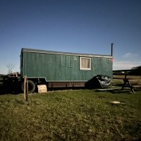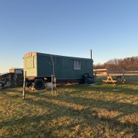 Reconstructed marquee in a newly established orchard, with far reaching views over the countryside. We appreciated arriving at the end of October to a heated marquee and hot water in the outdoor shower during our stay after a hassle-free arrangement. The property is set back from the village, within a ten minute walk to bus and train stops.