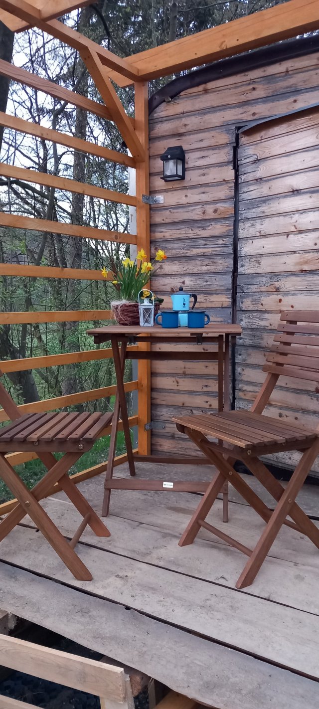 In the caravan there are books, board games, outdoor games. There is a rocking chair and a hammock in which you can even sleep if it is a nice warm night.