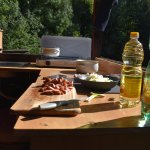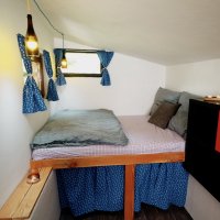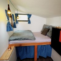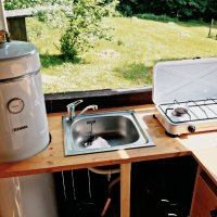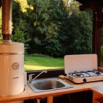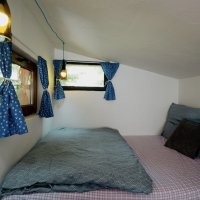 The cottage Chádr is well equipped, small, cosy and practical. The island's photovoltaic system served us well even in very rainy weather. The heating of the room by the spa stove is fine, the gas cooking fully sufficient, as is the amount of crockery and kitchen equipment. The supply of wood and drinking water was ok, we also used the axe and logs. We covered the porch on two sides with tarps against the autumn winds, which greatly increased the comfort of cooking and dining on the porch.