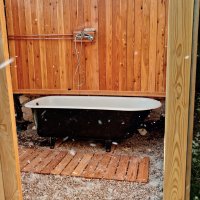 A great place if you want to be in nature, but have a little bit of that comfort at the same time. The cabin has bottled drinking water, gas stove, car fridge, bathtub and flushable tub next to the cabin. There are also dishes, cooking utensils, even tea/coffee, oil, salt and some extra spices. In short, you just need to buy groceries, otherwise you don't have to worry about anything. Flooding in the spa stove is awesome - the hot water even lasted overnight!