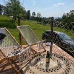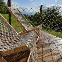 There is electricity and drinking water. The bathroom has a solar shower and a bathtub with water heated by a wood boiler. In the evening you can enjoy a hot bath under the stars. The bathroom also includes a toilet.