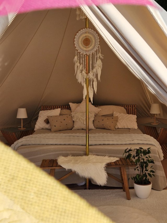 And if the sky happens to be overcast - even those days have their charm. You can snuggle up in the blankets, light a candle or just listen to the rain drumming against the canvas walls.