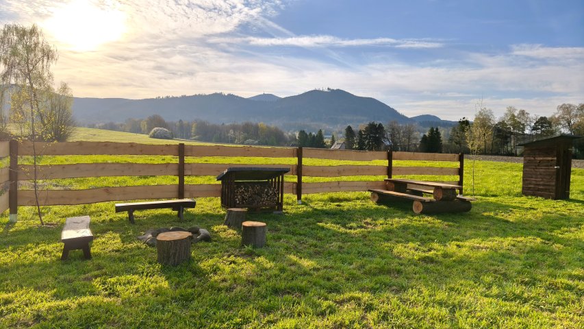 Místo působí otevřeně, zároveň poskytuje dostatek soukromí pro nerušený odpočinek v přírodě. Okolí vybízí k procházkám i náročnějším túrám – v blízkosti vede Čapí stezka, odkud se snadno napojíte na turistické trasy směřující na Lysou horu. Po cestě můžete navštívit například Satinské vodopády nebo si udělat zastávku na občerstvení v tradiční beskydské hospůdce U Veličků.