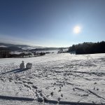 Quite a nice place on the border of pasture and forest by a small pond. Plenty of room around the marquee, reasonable privacy. There is a marked hiking trail (asphalt road) about 150 yards from the marquee, but I don't think it would be a problem.