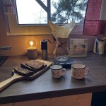 The marquee itself is absolutely great, everything you need inside (stove, gas cooker, dishes, sink, water, double bed, warm blankets and extra blankets, table, chairs, electricity). All equipment new, clean, functional.