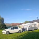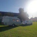 Na přespání na okraji Prahy fajn místo, elektrické přípojky, voda, Toi toi WC. Travnatá plocha mezi zástavbou, oplocená. Výjezd s obytným přívěsem trošku komplikovanější na vytočení..a to máme ještě spíš menší karavan. Mírně hlučnější místo..vlak..auta ..ale v noci jsme spali v klidu.