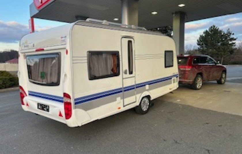 Celoroční obytný přívěs pro 4-5 osob. Karavan je plně vybavený. Vlastní nádrž s pitnou vodou, 12 V akumulátor a plynová bomba.